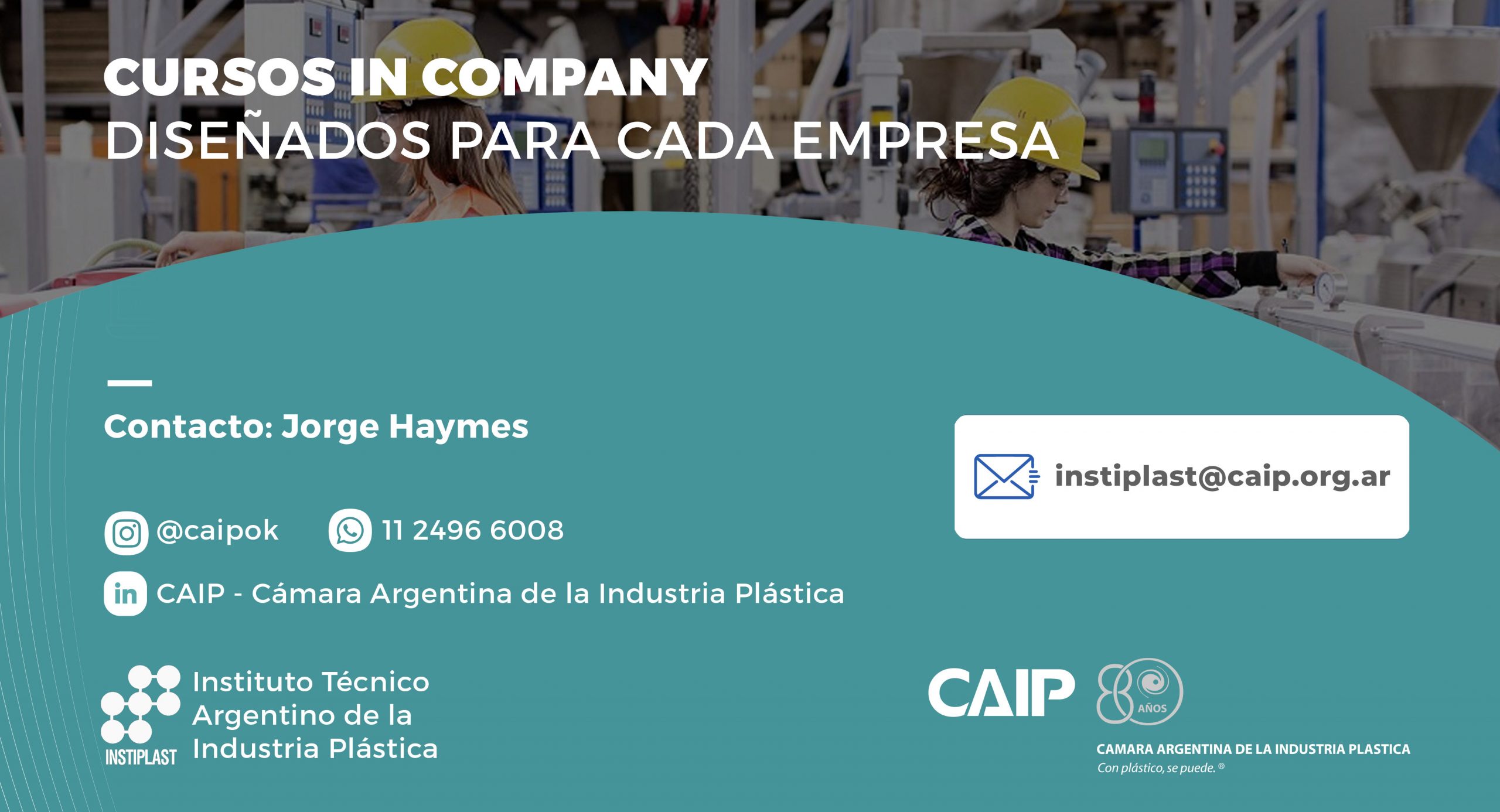 Los cursos In Company, diseñados especialmente de acuerdo a las necesidades de capacitación, demanda, experiencias y perfiles de cada empresa, posibilitan la formación de los grupos de trabajo sin la necesidad de tener que trasladarse a los centros de capacitación ahorrando de esta forma demoras en viajes, gastos adicionales de extensión de seguros y viáticos. Por otro lado la actividad In Company favorece al compromiso y la motivación por parte de los asistentes a realizar sus clases prácticas en los mismo equipos en los que operan a diario. Las fechas, horarios y grupos de capacitación se acuerdan de acuerdo a las posibilidades de cada empresa y el dictante.